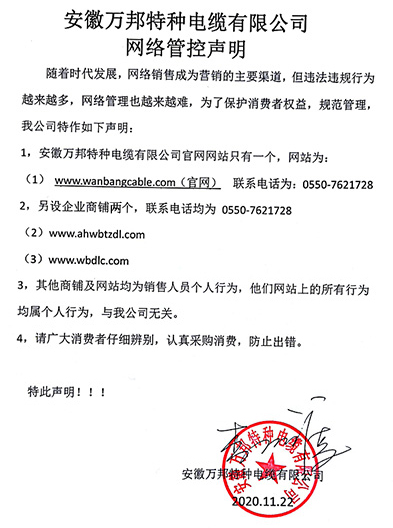 鄭重聲明:安徽萬邦特種電纜有限公司官方網站為:www_wanbangcable_com.hsjbcm.cn,除此之外無任何子網站或合作網站,其余均為假冒偽劣。電話:0550-7621728 13485756353 地 址:安徽省天長市滁州高新技術產業開發區經四路29號